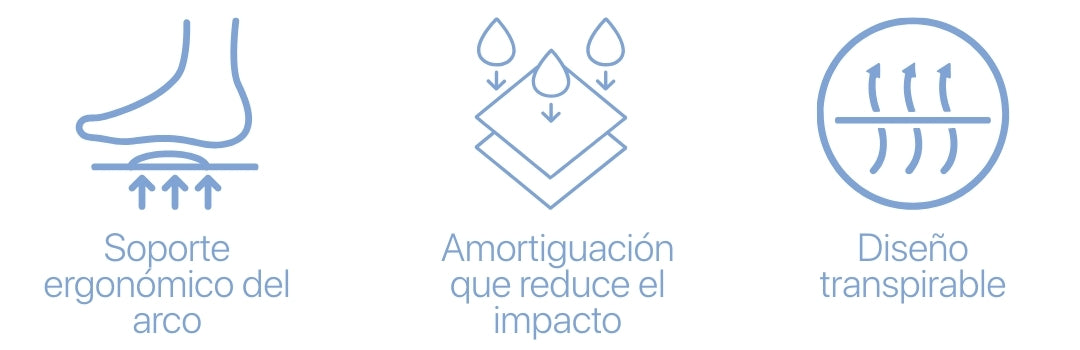 Cuentan con soporte para el arco plantar, diseño transpirable y base antideslizante para mayor estabilidad dentro del zapato.