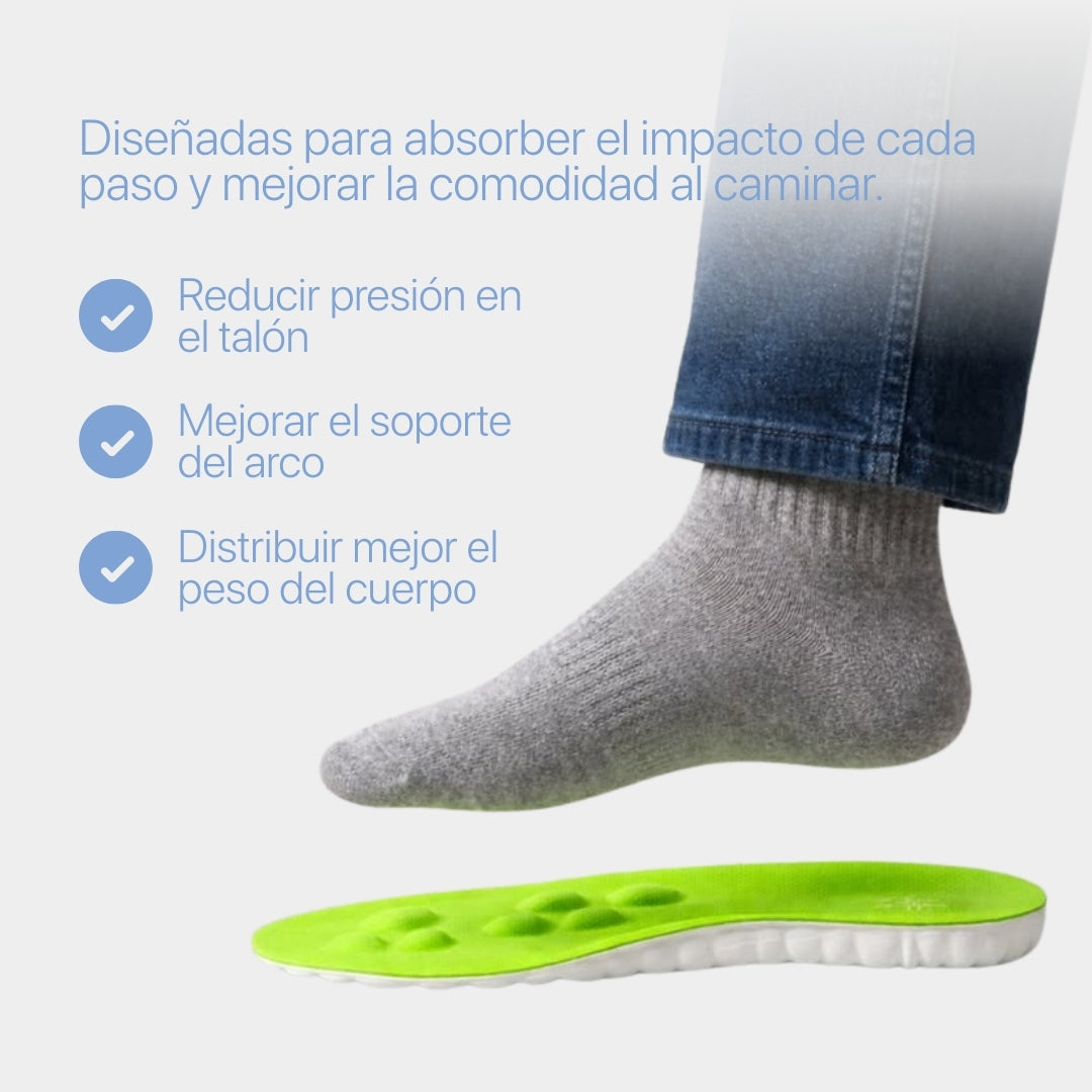 Diseñadas para absorber el impacto y reducir la presión en los pies, ayudando a mantener la comodidad durante todo el día.
