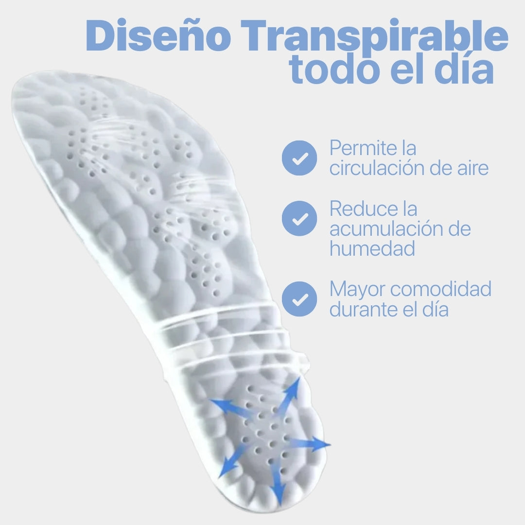 Las plantillas cuentan con diseño perforado que permite la circulación de aire, ayudando a mantener los pies frescos y reducir la acumulación de humedad durante todo el día.