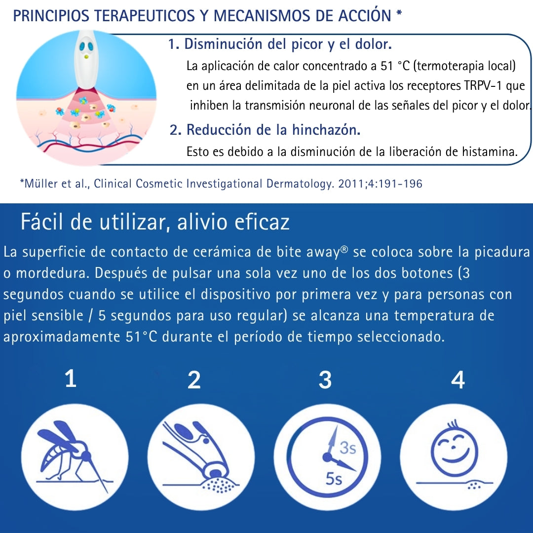 Bite Away actúa únicamente con calor concentrado, sin sustancias químicas.